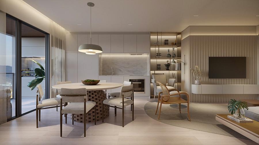 • Living integrado com sala de estar e sala de jantar Cozinha