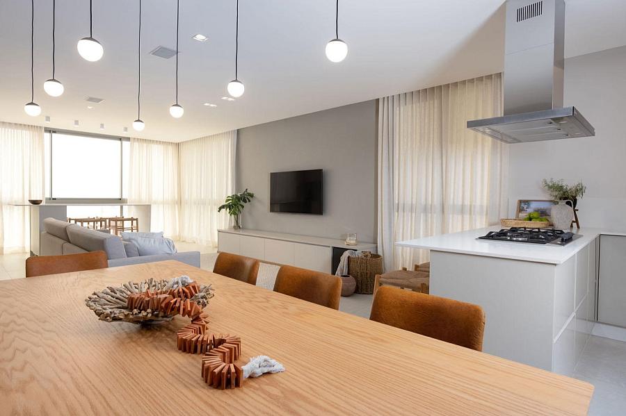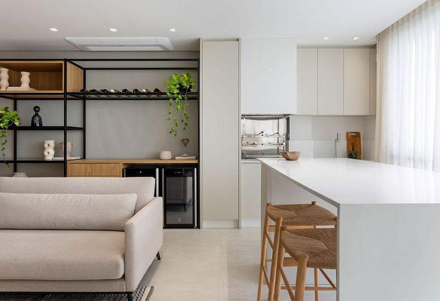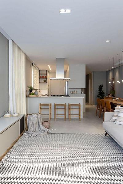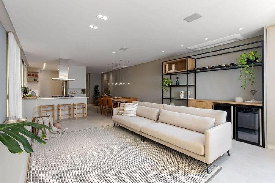 • Living integrado com sala de estar, jantar e cozinha
